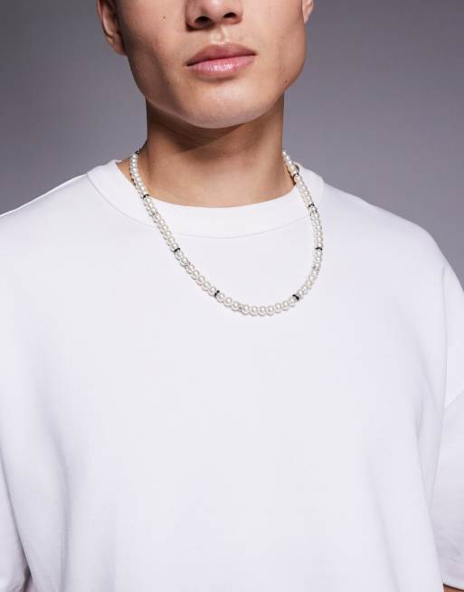 ASOS DESIGN festival faux pearl necklace with crystal spacer beads necklace in white