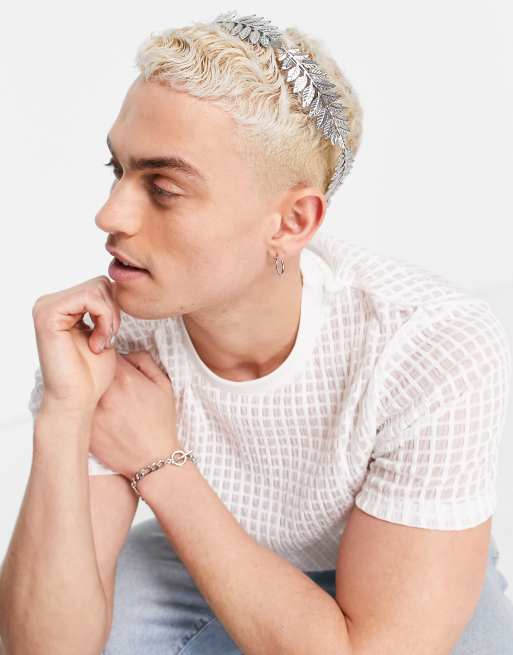 ASOS DESIGN festival leaf head crown in silver tone