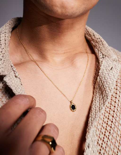 ASOS DESIGN festival waterproof stainless steel black oval pendant necklace in gold