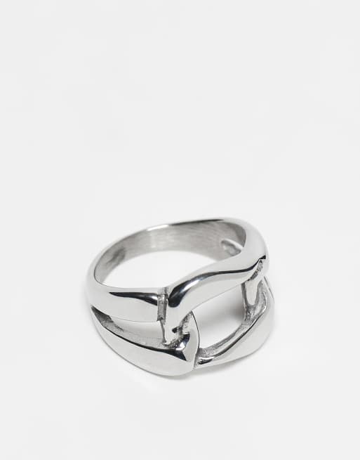 ASOS DESIGN festival waterproof stainless steel chain link ring in brushed silver