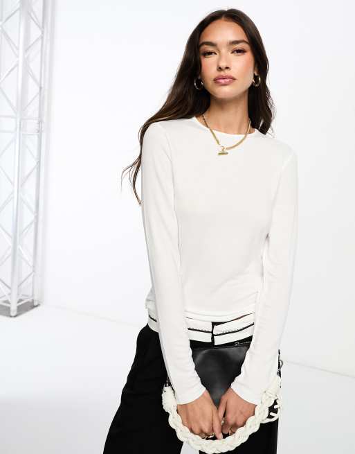 ASOS DESIGN fine knit long sleeve crew neck top in white