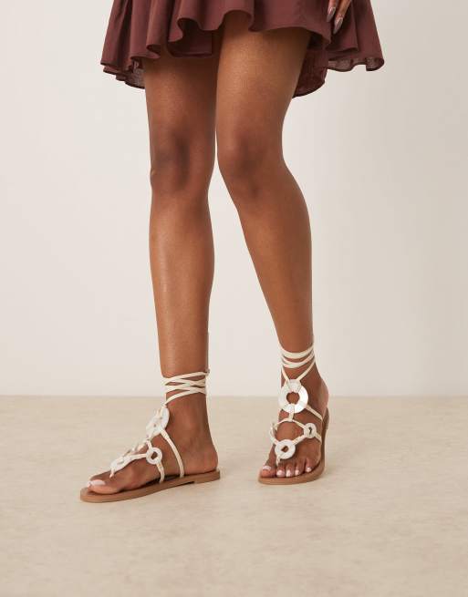 ASOS DESIGN Fiona trim tie leg flat sandals in white