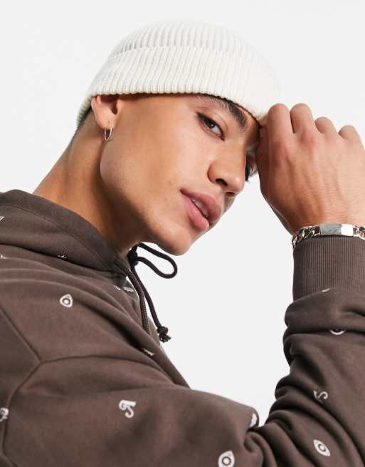 ASOS DESIGN fisherman beanie hat in off white