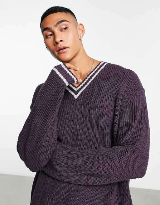 ASOS DESIGN fisherman rib cricket jumper in purple