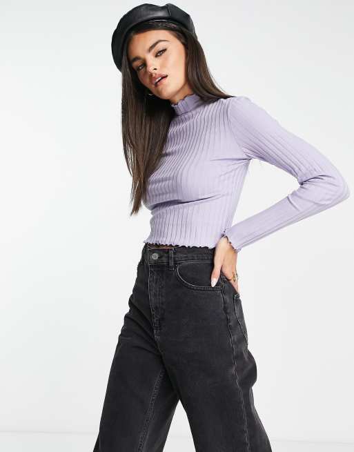 ASOS DESIGN fitted rib top with lettuce hem in lilac