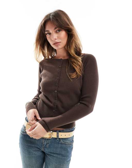 ASOS DESIGN fitted ribbed cardigan in chocolate