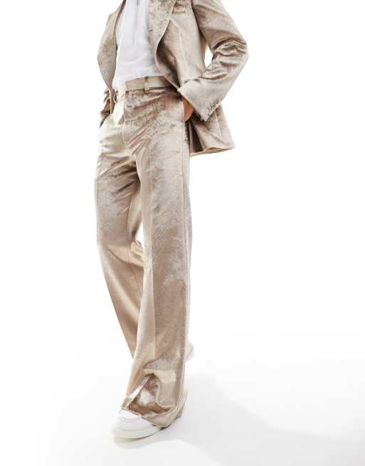 ASOS DESIGN flare suit trouser in embossed gold velvet
