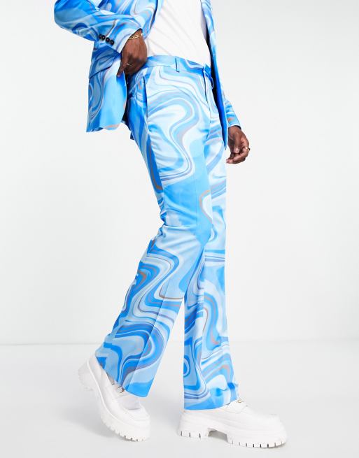 ASOS DESIGN flare suit trousers in tonal blue print