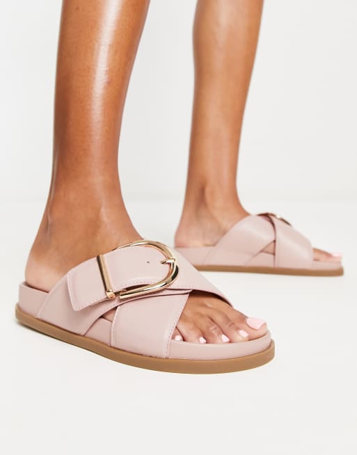 ASOS DESIGN Flash buckle cross vamp flat sandals in pink