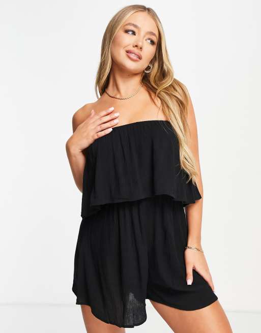 ASOS DESIGN floaty crinkle bandeau beach playsuit in black
