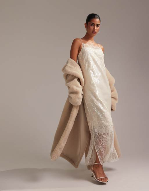 ASOS DESIGN floral lace applique embellished cami midaxi wedding dress in ivory