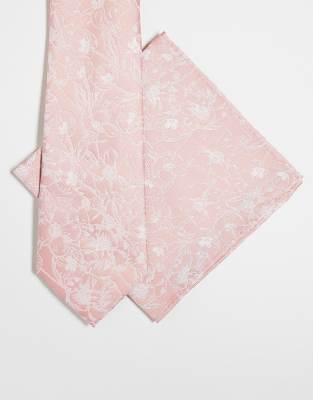 ASOS DESIGN floral print tie and pocket square in pink
