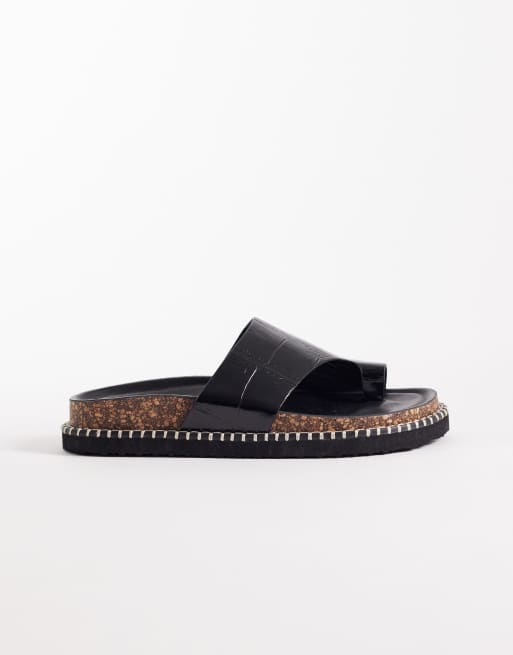 ASOS DESIGN Floris toe loop flat sandal in black croc