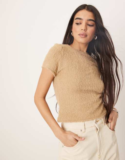 ASOS DESIGN fluffy baby tee in buttermilk