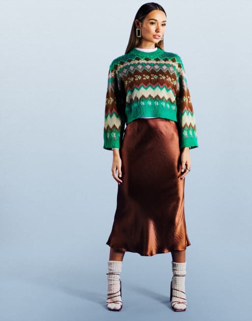 ASOS DESIGN fluffy boxy jumper in fairisle pattern in green