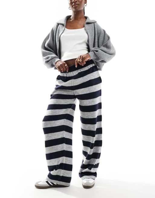ASOS DESIGN fluffy co-ord knitted trousers in blue and grey stripe