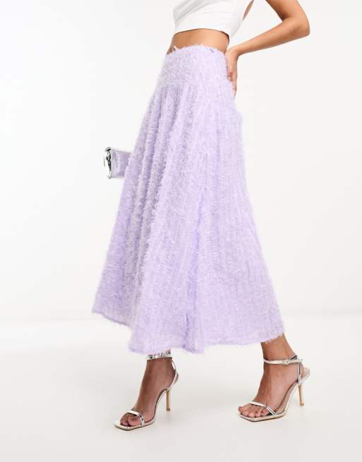ASOS DESIGN fluffy glitter midi skirt in lilac