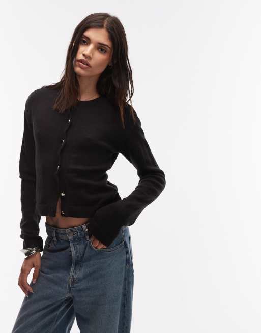 ASOS DESIGN fluffy knitted boxy fit cardigan in black