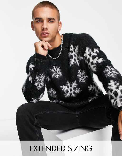 ASOS DESIGN fluffy knitted Christmas jumper with flake design in black