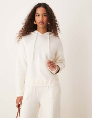 ASOS DESIGN fluffy knitted hoodie co-ord in ecru