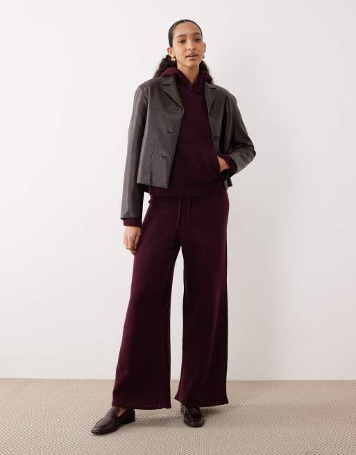 ASOS DESIGN fluffy knitted wide leg trousers co-ord in plum