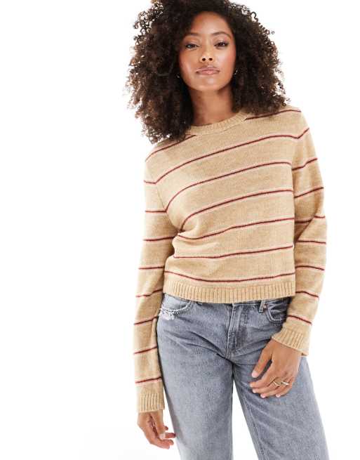 ASOS DESIGN fluffy oversized jumper in brown stripe