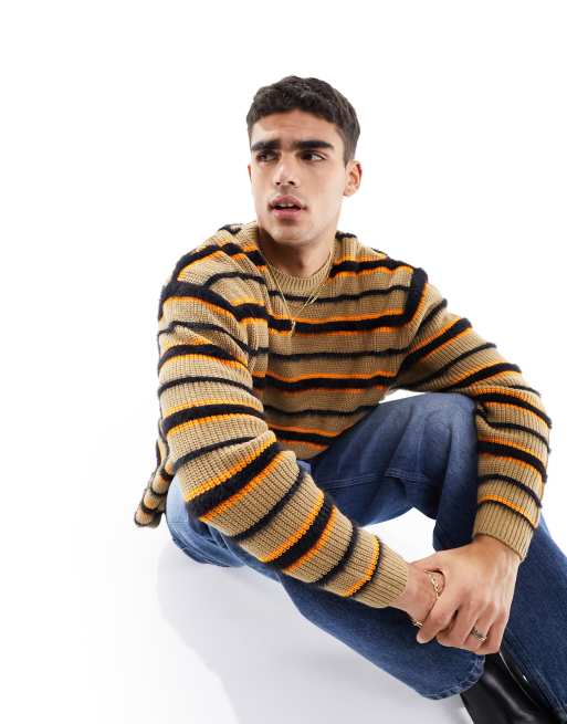 ASOS DESIGN fluffy oversized jumper in stone and black stripe