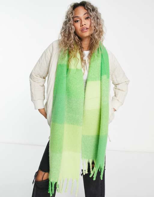 ASOS DESIGN fluffy tassel scarf in green oversized check