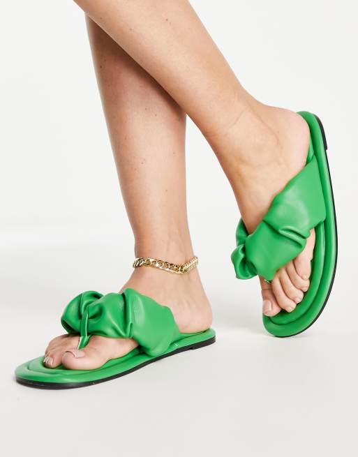 ASOS DESIGN Flying ruched toe thong sandals in green