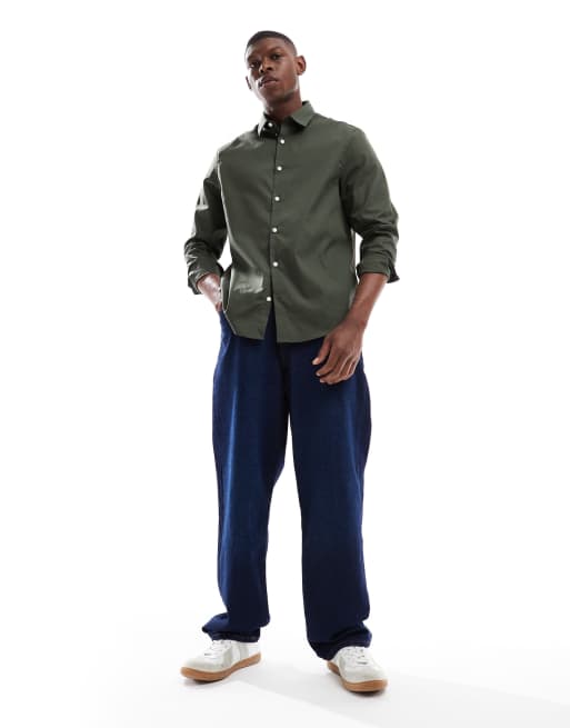 ASOS DESIGN formal easy iron poplin regular shirt in dark green