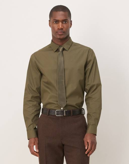 ASOS DESIGN formal easy iron poplin regular shirt in khaki