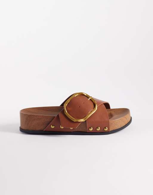 ASOS DESIGN Foster leather clog mule sandal in tan