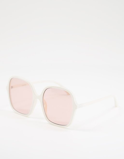 ASOS DESIGN frame 70s sunglasses in white with brown lens - CREAM