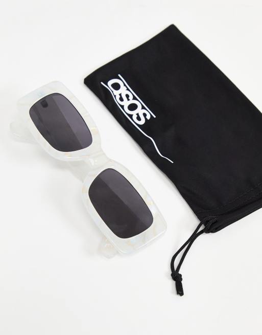 ASOS DESIGN frame mid square sunglasses in pearlised finish - WHITE
