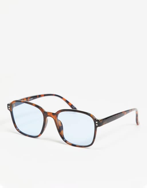 ASOS DESIGN frame round sunglasses with pale blue lens - BROWN