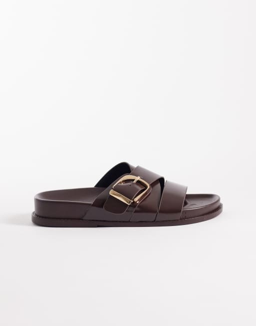 ASOS DESIGN Freeway double strap slider in chocolate