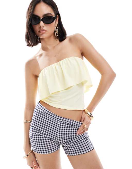 ASOS DESIGN frill bandeau top in buttermilk