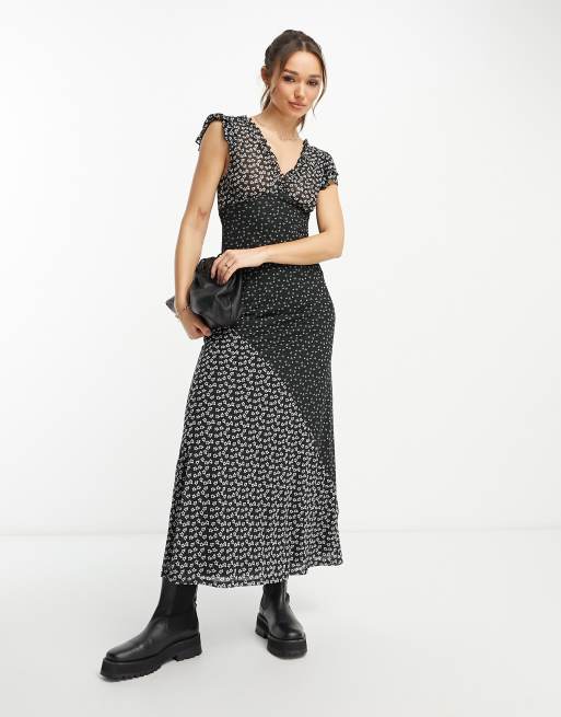 ASOS DESIGN frill sleeve mdiaxi tea dress in mixed print