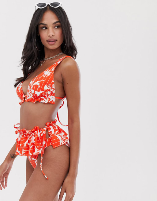 ASOS DESIGN frill triangle bikini in flamenco floral stripe print