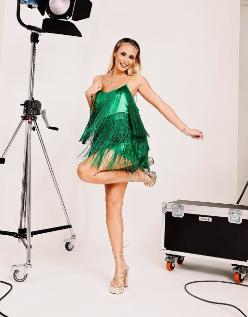 ASOS DESIGN fringed mini dress in green