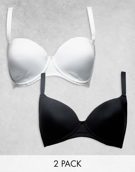 ASOS DESIGN Fuller Bust 2 pack microfibre moulded t-shirt bra in black & white