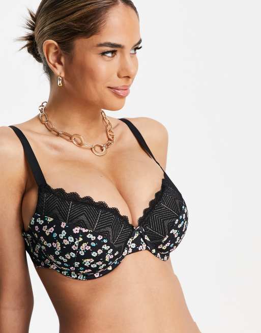 ASOS DESIGN Fuller Bust Amaya ditsy floral & lace padded bra in black