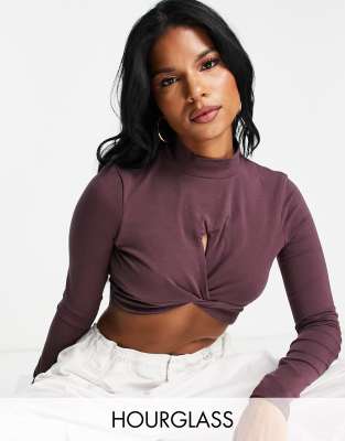 ASOS DESIGN Fuller Bust cut out twist front crop top in aubergine