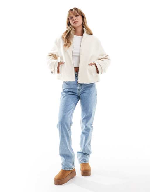 ASOS DESIGN funnel jacket in cream boucle