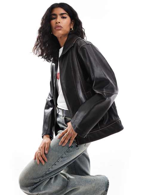 ASOS DESIGN funnel neck oversized biker jacket in black