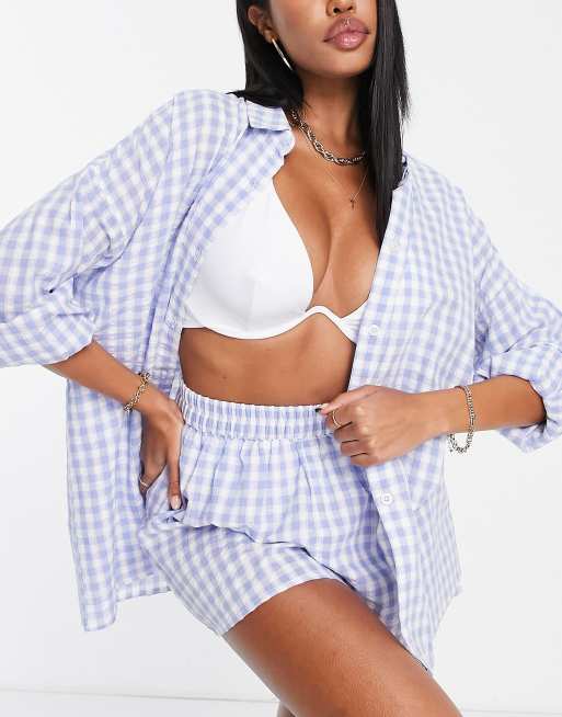 ASOS DESIGN gingham check beach shirt co ord in blue