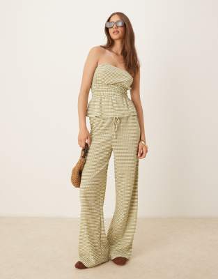 ASOS DESIGN gingham co-ord wide leg trouser in green