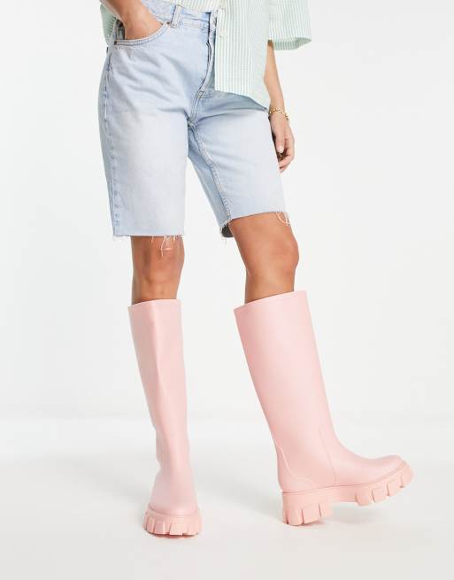 ASOS DESIGN Gracie chunky knee high wellies in pink