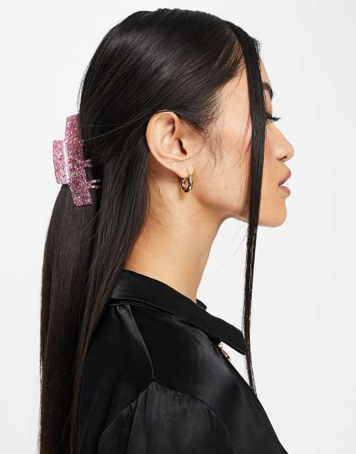 ASOS DESIGN hair claw clip in pink glitter