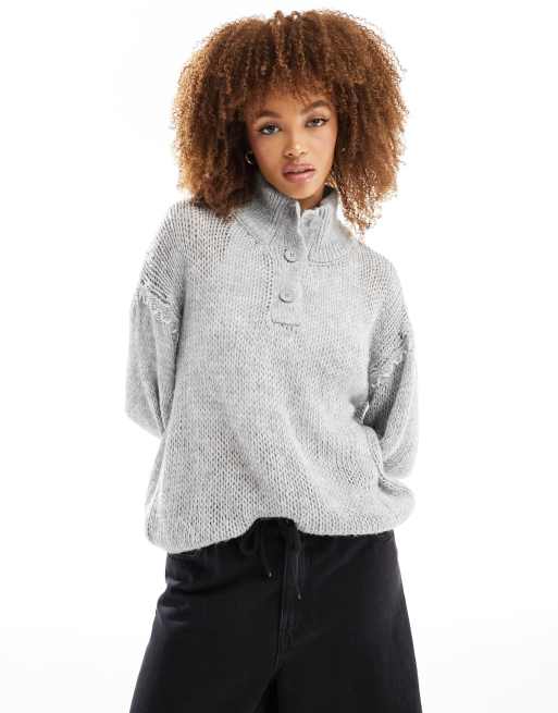 ASOS DESIGN half button blanket stitch jumper in grey